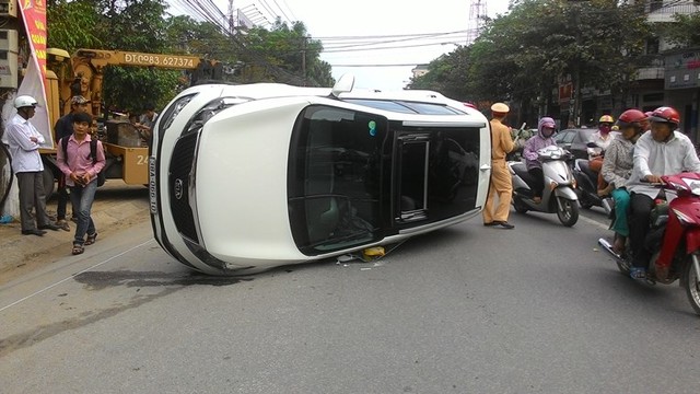 Old  Default Ô tô đâm nhau chổng bánh giữa phố