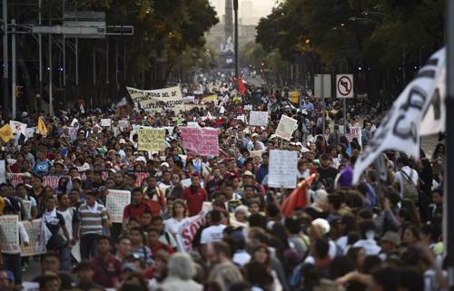 Hàng ngàn người biểu tình ở thủ đô Mexico City của Mexico ngày 5.11, phản đối vụ 43 sinh viên mất tích - Ảnh: AFP