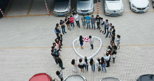 Màn cầu hôn của chàng lập trình viên được đông đảo đồng nghiệp trong công ty giúp sức khi cùng anh xếp 96 hộp Iphone 6 thành hình trái tim lớn giữa sảnh của công ty, 3 chiếc còn lại được cài vào bó hoa hồng trên tay. Trước màn cổ vũ và khích lệ của các đồng nghiệp trong công ty, chàng lập trình viên đã ôm bó hoa và hướng đến người mình yêu.