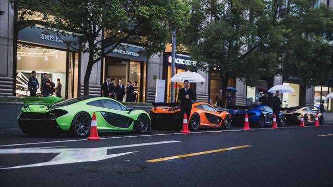 4 chiếc siêu xe P1 đã cùng nhau nằm nối đuôi trước cửa một đại lý McLaren chính hãng ở Trung Quốc. Trong đó, chiếc siêu xe McLaren P1 màu xanh cốm Mantis Green nằm ở cuối hàng. Phía trên là 3 chiếc siêu xe McLaren P1 được sơn màu đặc biệt không kém.