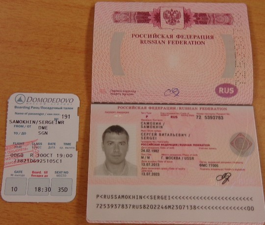 Giấy tờ của hành khách gây rối Sergei Samokhin