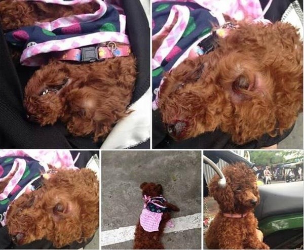 Sau khi va chạm, tôi bị 2 thanh niên đi trên ô tô Huyndai Santafe màu đen BKS 29A- 533.2* đuổi đánh. Khi đánh tôi xong, 2 thanh niên quay lại dùng gậy đánh chết con chó của tôi.