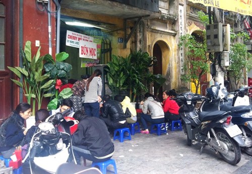 Khoảng 40.000 đồng/bữa sáng tại phố cổ, quán bún mọc trong ngõ Hàng Lược (Hoàn Kiếm, Hà Nội) nổi tiếng đắt khách 30 năm nay nhờ mức giá chỉ bằng nửa thị trường. Tới gần 10h, quán bún mọc trên ngõ phố Hàng Lược vẫn chưa ngớt khách. Gần chục nhân viên cùng chủ quán vừa hối hả phục vụ nốt lượt khách cuối cùng vừa tranh thủ dọn dẹp cửa hàng để trả lại không gian đi lại. Giá cho mỗi suất ăn tại đây dao động 20.000 - 25.000 đồng, được nhiều khách hàng cho là rẻ so với mặt bằng chung tại khu phố đắt đỏ nhất thủ đô.
