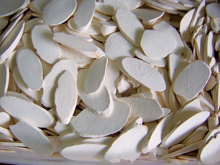 - Hoài sơn (củ mài): Vị ngọt, tính bình, có công dụng tư thận bổ phế, kiện tỳ ích tinh. Sách Bản thảo chính viết: “Sơn dược năng kiện tỳ bổ hư, tư tinh cố thận, trị chư hư bách tổn, trị ngũ lao thất thương” (Củ mài có khả năng bổ tỳ thận và ích tinh, trị được mọi chưng hư tổn). Sách Bản thảo kinh độc cũng cho rằng hoài sơn “năng bổ thận điền tinh, tinh túc tắc âm cường, mục minh, nhĩ thông”.