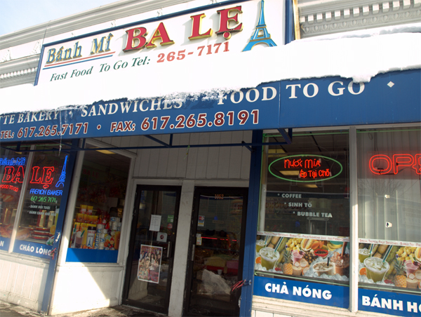 Cửa hàng Banh My Ba Le ở Dorchester, Mỹ khá to và phong phú, các nhân viên làm việc thoăn thoắt, cho ra chiếc bánh mềm kèm theo tương đen và tương ớt, rất hấp dẫn khách hàng.