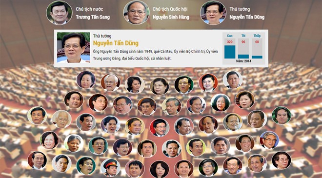 Trước đó, sáng 15/11, Quốc hội đã lấy phiếu tín nhiệm đối với 50 chức danh chủ chốt do Quốc hội bầu và phê chuẩn, theo 11 nhóm. So với năm 2013, danh sách lần này có thêm 4 vị mới là ông Nguyễn Đức Hiền (Trưởng ban Dân nguyện), ông Nguyễn Văn Nên (Chủ nhiệm Văn phòng Chính phủ), ông Nguyễn Hữu Vạn (Tổng kiểm toán), ông Đinh Tiến Dũng (Bộ trưởng Tài chính).