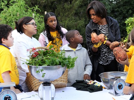 Còn bà Michelle Obama, sau khi chuyển vào Nhà Trắng, đã cho trồng mảnh vườn rộng 140m2 và mới đây thu hoạch được khoảng 700kg rau củ dùng cho gia đình tổng thống. Các thực phẩm rất đa dạng như cải xanh, rau bina, cải bắp, xà lách và các loại rau thơm gia vị khác.