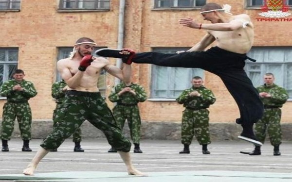 Dùng yết hầu đẩy gẫy mũi giáo, lấy tay không chặt vỡ đống gạch, treo cổ lơ lửng trên không hay dùng đầu gối hạ đối thủ theo phong cách quyền Thái là những pha phô diễn uy lực của 50 võ sinh thuộc Bộ Tổng Tham mưu Quân đội Ukraine tại một trường dạy võ ngay tại Kiev.