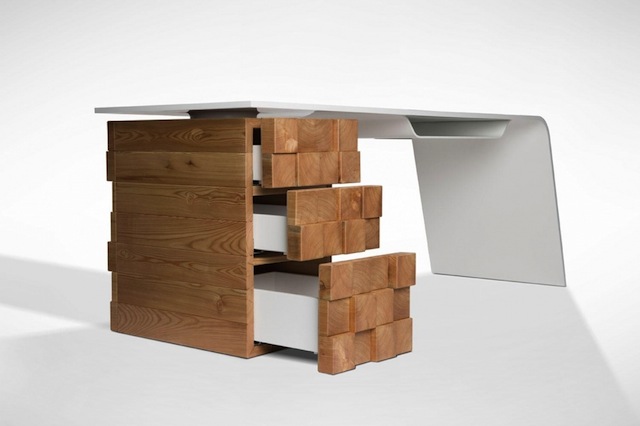 Chiếc bàn này gồm có hai phần, phần bề mặt màu trắng được làm từ Kerrock, một loại vật liệu có thể tái chế và phần chịu lực chính là một chiếc tủ màu vỏ thân cây với ba ngăn kéo. Vị trí sạc điện thoại được bố trí trên mặt bàn. Bộ sạc này được kết nối với một đèn LED và sẽ rất dễ nhận ra vì nó luôn nhấp nháy đèn màu trắng ở chế độ chờ, sau đó nó sẽ chuyển sang màu đỏ khi bạn đặt điện thoại vào và chuyển sang màu xanh lá cây khi điện thoại được sạc đầy.