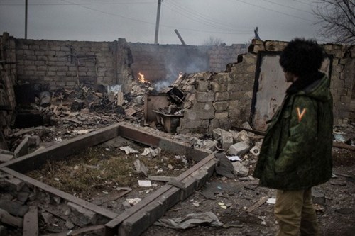 Hậu quả của một vụ pháo kích ở đông Ukraine.
