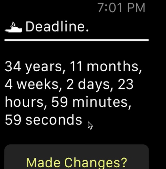 Bạn còn nhớ đến Deadline không? Đây là một ứng dụng tính toán ngày còn sống trên cõi đời dành cho người dùng iPhone tuy nhiên sắp tới Deadline còn có thể được ứng dụng trên cả Apple Watch.