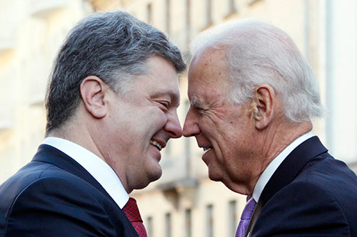Tổng thống Ukraine Petro Poroshenko (trái) và Phó tổng thống Mỹ Joe Biden gặp nhau tại Kiev ngày 21.11.2014
