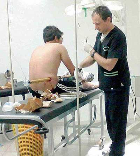 Người thợ ống nước sống tại thành phố Obera, tỉnh Misiones, Argentina này đã nhập viện trong tình trạng bị một ống sắt xuyên thủng bụng. Do không có bảo hiểm lao động nên anh Ramon không được điều trị ngay lập tức mà chỉ được giảm đau bằng aspirin.