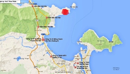 Dự án du lịch triệu đô trên núi Hải Vân (chấm đỏ) nằm ở vị trí trọng yếu giữa nước Việt Nam đã được dừng thực hiện