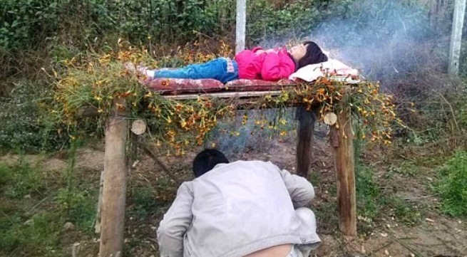 Anh Wei Shufu sống ở tỉnh Vân Nam, Trung Quốc đang tìm cách chữa bệnh cho con gái mình là Wei Jinqiu, 6 tuổi bằng cách cho cô bé xông khói đốt các loại thảo dược.