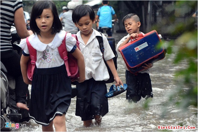 Old  Default Chùm ảnh Sài Gòn ngập, trẻ em lội nước thối đến trường