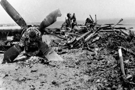 Xác máy bay Mỹ sau vụ va chạm ở điểm hẹn số 2. Ảnh: Wikipedia