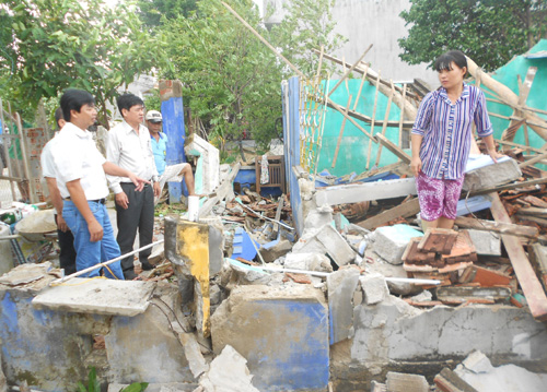 Bà rớm nước mắt, nhớ lại: “12 giờ đêm là gió mạnh dữ dội. Thấy nhà rung mạnh, tui lật đật dẫn con qua nhà hàng xóm trú nhờ. Sau đó, gió quét mạnh, dập nát ngôi nhà. Gió ngừng là tui chạy chạy về. Thật không thể tin là nhà không còn, chỉ còn đống gạch nằm xen lẫn với những dát cây đà, xìa vương vãi”.