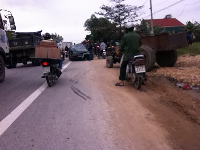 Vào thời gian trên, chiếc xế hộp mang biển số 37A-114.87 (chưa rõ người điều khiển) đi theo hướng Vinh - Nam Đàn. Khi đến đoạn đường nói trên thì bất ngờ một chiếc xe công nông đang đi từ trong đường làng ra quốc lộ 46.
