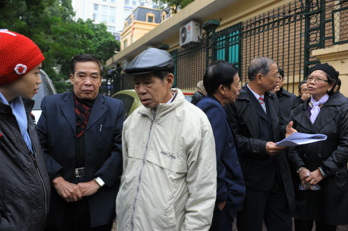 Ông Lê Văn Viễn (áo trắng) cho rằng Cơ quan điều tra cần phải làm rõ nội dung lời khai của Đào Quang Khánh sáng nay.
