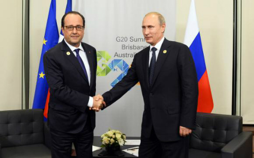 Tổng thống Pháp Francois Hollande và người đồng cấp Nga Vladimir Putin - Ảnh: Reuters