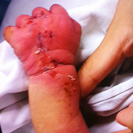 Cánh tay của bé trai bị thương tổn nghiêm trọng sau vụ “tấn công” của mẹ.