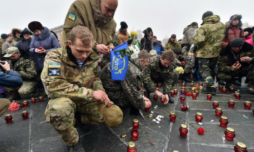 Binh sĩ Ukraine thắp nến tưởng niệm các đồng đội thiệt mạng.