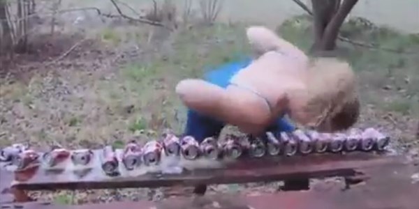 Đoạn clip quay lại hình ảnh một cô gái đập vỡ hàng chục lon bia bằng ngực. Tuy nhiên một sự cố đã xảy ra khi ở những lon bia cuối cùng, cô gái đã không may đập đầu trúng bàn... đau điếng.