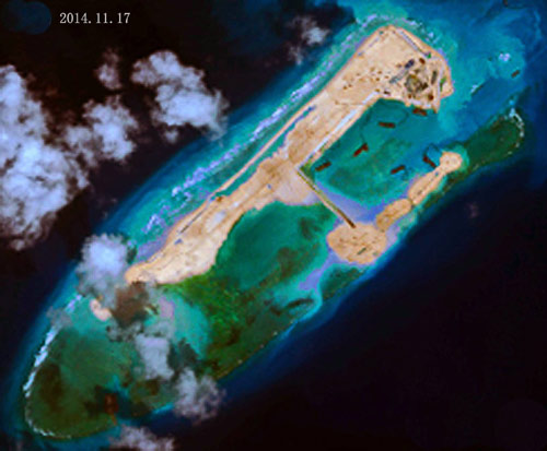 Song song với đó, Trung Quốc còn đẩy mạnh hoạt động đào đắp, biến một số bãi đá thuộc quần đảo Trường Sa của Việt Nam thành đảo để xây dựng căn cứ quân sự và đường băng sân bay.