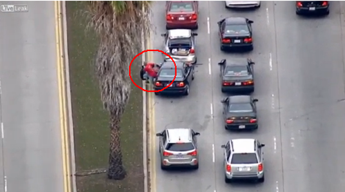 Vụ việc xảy ra lúc 3 giờ 40 phút chiều 2/12 (giờ địa phương) tại Van Nuys, Los Angeles, Mỹ. Tên trộm đã lái chiếc sedan BMW với tốc độ cao trên đường cao tốc 405 Freeway, sau đó chuyển làn đột ngột trước khi đâm vào đuôi của một chiếc xe đi trước khiến chiếc xe này bật tung cả cốp sau.