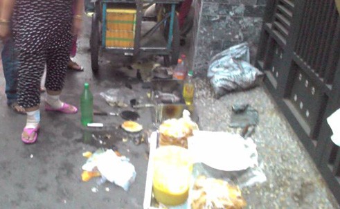 Tủ kiếng cùng đồ dùng bán bánh nướng của chị Hoa bị đổ vỡ.