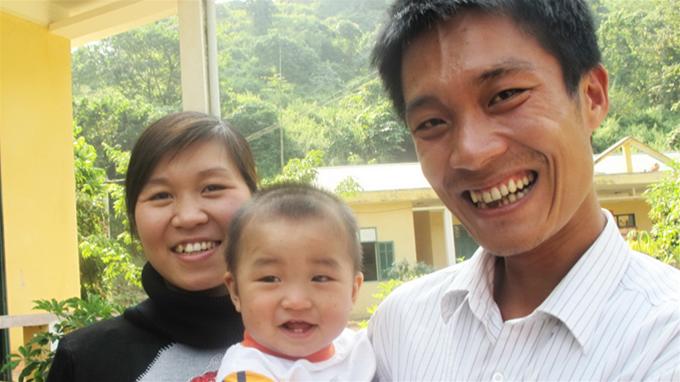 Nụ cười hạnh phúc với gia đình bé nhỏ của trung úy Trần Văn Duẩn ở đồn biên phòng A Mú Sung, khi anh chưa hy sinh - Ảnh: Ngọc Quang (Tuổi Trẻ)