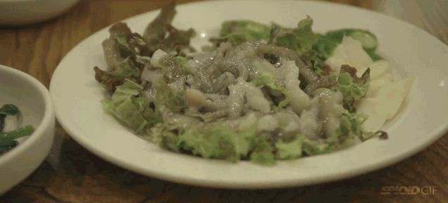 Những con bạch tuộc với những chiếc chân vẫn còn đang ngoe nguẩy được người Hàn Quốc ăn ngon lành.