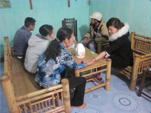Bà đang trò chuyện cùng chúng tôi thì bà Trần Thị Thơm (55 tuổi, trú tại tiểu khu 13- thị trấn Lương Sơn) tới thăm, bà Thơm bị tiểu đường cách đây 2 năm, nhiều lần chữa ở bệnh viện đa khoa tỉnh Hòa Bình, Bạch Mai, Xanh- Pôn nhưng không khỏi dứt điểm, “Do phải thường xuyên tiêm insulin theo định kì rất tốn kém, kinh tế gia đình sa sút nên tôi chỉ còn cách chờ chết, lúc đó mắt tôi rất mờ và chỉ nằm một chỗ nhờ con cháu chăm sóc, được bà con mách, con gái tôi đến lấy thuốc của bà, sau hai tháng uống thuốc thì mắt đã sáng trở lại, tôi có thể tự vận động đi lại, từ đó mỗi khi rảnh rỗi tôi lại xuống thăm bà, nếu không nhờ ơn cứu mạng của bà, giờ tôi đã xanh cỏ rồi”, bà Thơm chia sẻ.