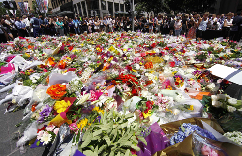 Dưới bầu trời ảm đạm của Sydney, từng đoàn người, trong đó có nhiều trẻ em, lần lượt đặt hoa tưởng niệm ở bên ngoài Lindt, gần khu thương mại Martin Place, thuộc quận trung tâm thành phố. Gương mặt họ thẫn thờ, ánh mắt đượm buồn, đầu cúi thấp, an ủi lẫn nhau.