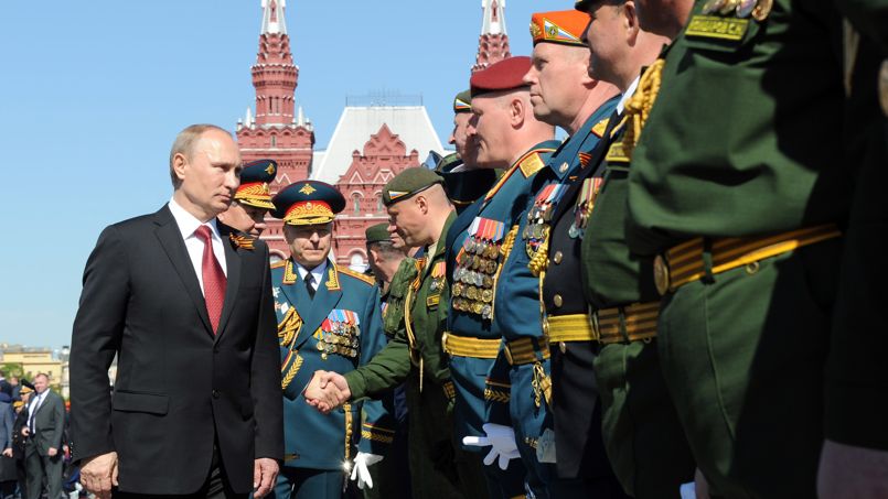 Tổng thống Putin và các tướng lĩnh quân đội Nga trong cuộc duyệt binh ngày 9/5 vừa qua tại Quảng trường Đỏ. Ảnh minh họa.