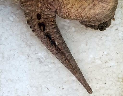 Đuôi con rùa của chủ quán nhậu ở Cần Thơ được cho là “kỳ lạ” khi mọc nhiều gai.