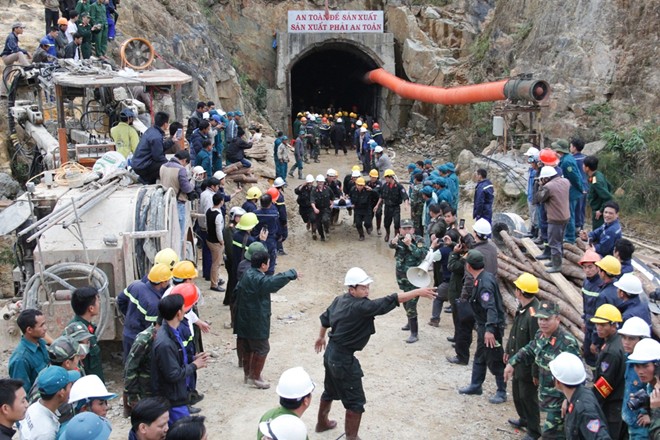 Trong nhóm có 2 người thân của chị Ngọc là anh Phạm Viết Nam (40 tuổi, anh chồng) và anh Phạm Viết Lành (20 tuổi, bà con bên nội). Vào độ sâu 500 m, cả nhóm thi công đến khoảng 7h thì nghe một tiếng động rất lớn từ sau lưng. Quay lại thì thấy hàng trăm tất đất đá từ nóc hầm đổ ập xuống. Tất cả đều hoảng loạn.