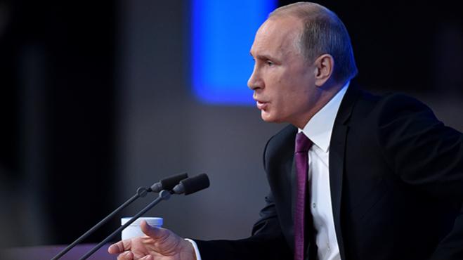 Còn về kinh tế, ông đánh giá rằng chính phủ và các cơ quan khác đã làm tốt khi xác định được những vẫn đề hiện có. Ông thừa nhận rằng Nga đang trải qua một giai đoạn khó khăn và đáng lẽ những quyết định quan trọng phải được đưa ra sớm hơn. Vào thời điểm này, chiến lược của Ngân hàng Trung ương là đủ. Nền kinh tế sẽ tự biến đổi trong bối cảnh giá các nguồn năng lượng đang giảm, và sẽ đa dạng hóa, và sẽ tiếp tục tăng trưởng. Putin thể hiện quyết tâm sẽ vượt qua những khó khăn, bởi giá dầu sau thời kỳ giảm giá sẽ tăng trở lại, và ông phải có trách nhiệm cung cấp phúc lợi xã hội cho người dân.