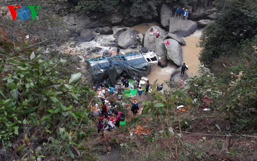 Tại khu vực xã Sa Pả, cách thị trấn Sa Pa khoảng 6km, một xe tải chở quýt đã lao xuống vực suối đá sâu hàng chục mét.