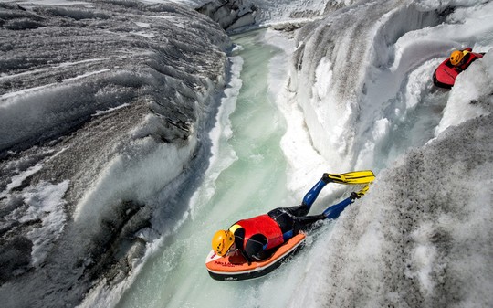 ...Hướng dẫn viên leo núi người Thụy Sĩ Claude-Alain Gailland và chuyên gia về núi Gilles Janin là 2 trong số ít người trên thế giới thực hiện được hành trình khó tin này. Con sông băng ở Thụy Sĩ này có những dòng chảy mạnh đủ sức cuốn mọi thứ ra xa hoặc những khe nứt có thể dìm người ta chết đuối.