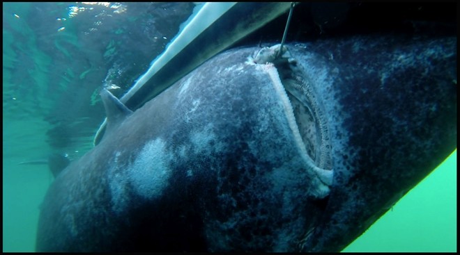 Nước biển rất trong nên Joel có thể thấy rõ con cá ở độ sâu khoảng 15 m. Con cá mập Greenland có khối lượng 569 kg,dài 4m và đã sống khoảng 200 năm.