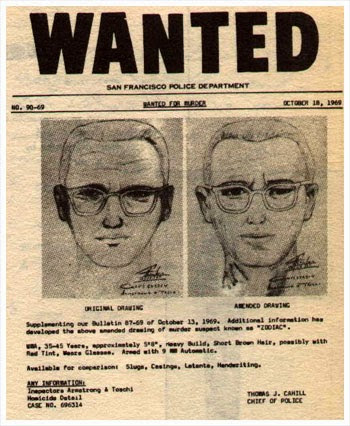 Lệnh truy nã Zodiac theo sự miêu tả của ba nhân chứng.