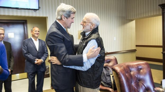 Ngoại trưởng Mỹ John Kerry chào đón Alan Gross sau khi ông được thả