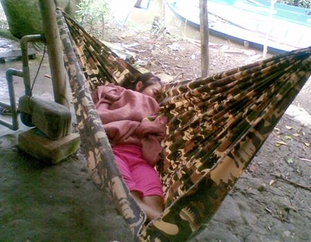 Chia sẻ với PV Zing, bà Nguyễn Thị Cúc (65 tuổi, ngụ phường 3, thị xã Ngã Năm, Sóc Trăng) cho biết cháu ngoại N.Y (17 tuổi) đã được gia đình tìm thấy sau hơn 1 tháng mất tích. Suốt tuần nay, nữ sinh lớp 10 này luôn nằm thở dài trên võng hoặc quấn mền, thần trí lơ ngơ, ăn ít và ít nói chuyện với ông bà ngoại.
