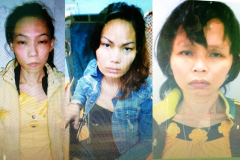 Đối tượng Huỳnh Thị Ngọc Dung (ngoài cùng, bên trái) và 2 nữ đồng phạm