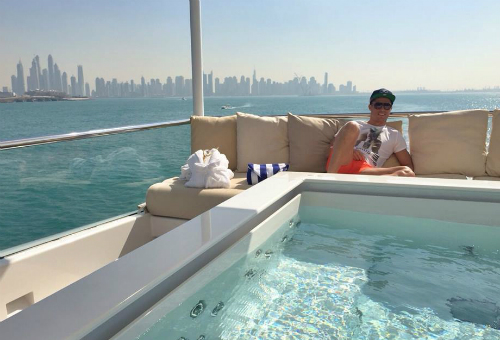 Ronaldo xả hơi trên chiếc du thuyền ở Dubai. Ảnh: Twitter.