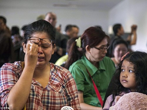 Ảnh: Thân nhân những người có mặt trên chiếc máy bay mất tích tại sân bay Surabaya chờ tin tức: