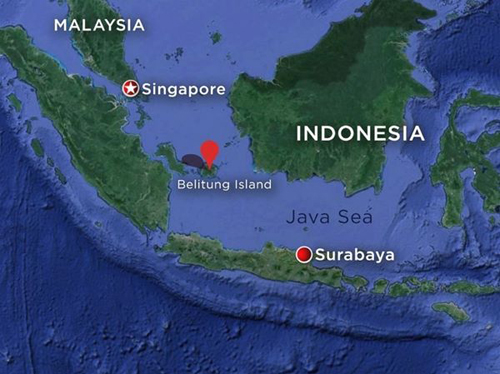 Khu vực tìm kiếm máy bay QZ8501 nằm ở biển Java, gần đảo Belitung. Đồ họa: ABC News