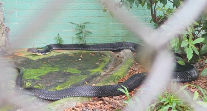 So với con hổ mang chúa lớn nhất trại Đồng Tâm hiện nay (trong ảnh, 12kg, dài 4m) thì con hổ mang chúa 18 tuổi nặng hơn gần gấp đôi.